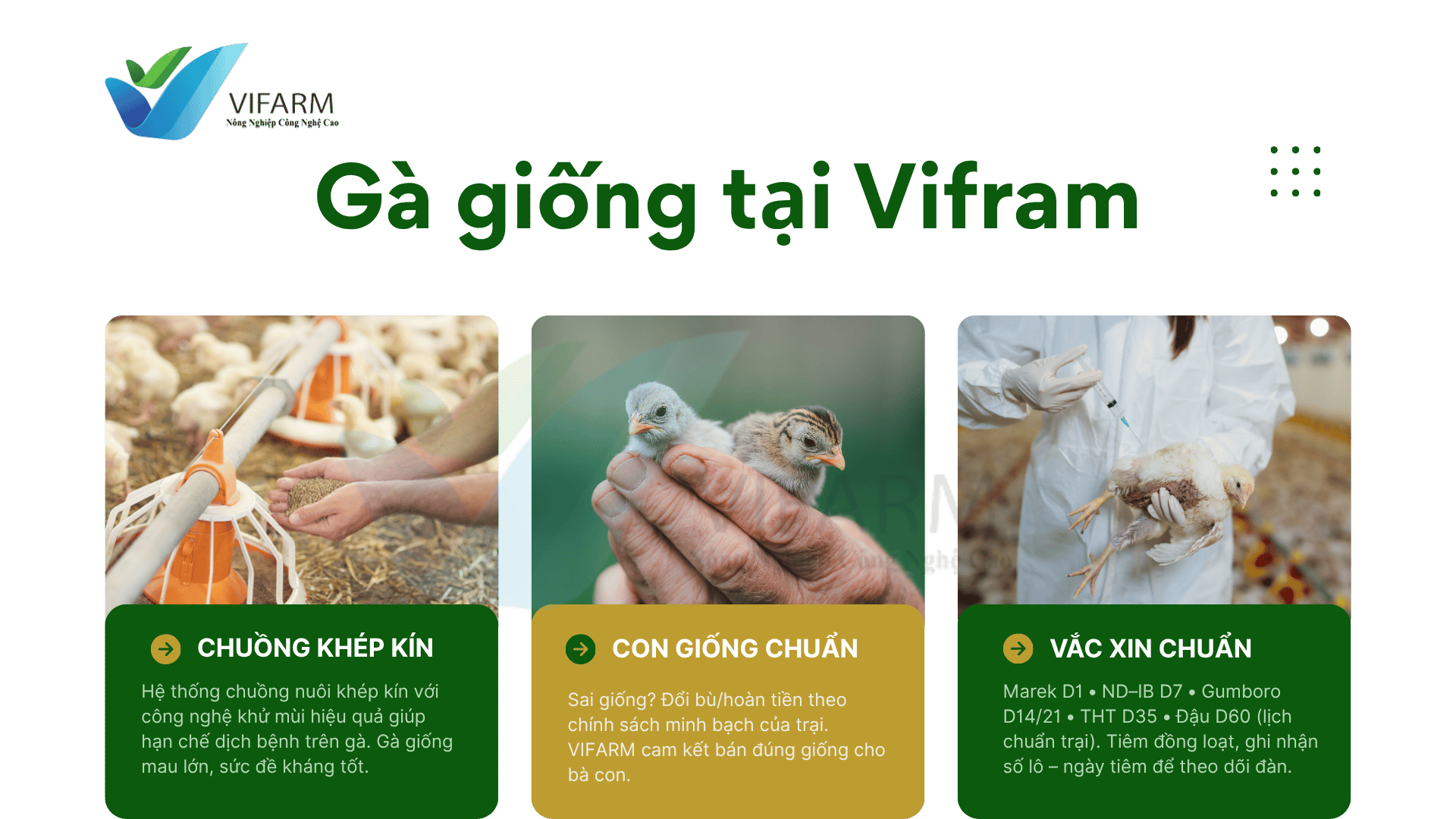 - Hậu mãi kỹ thuật: phác đồ úm – tiêm – dinh dưỡng theo tuần.