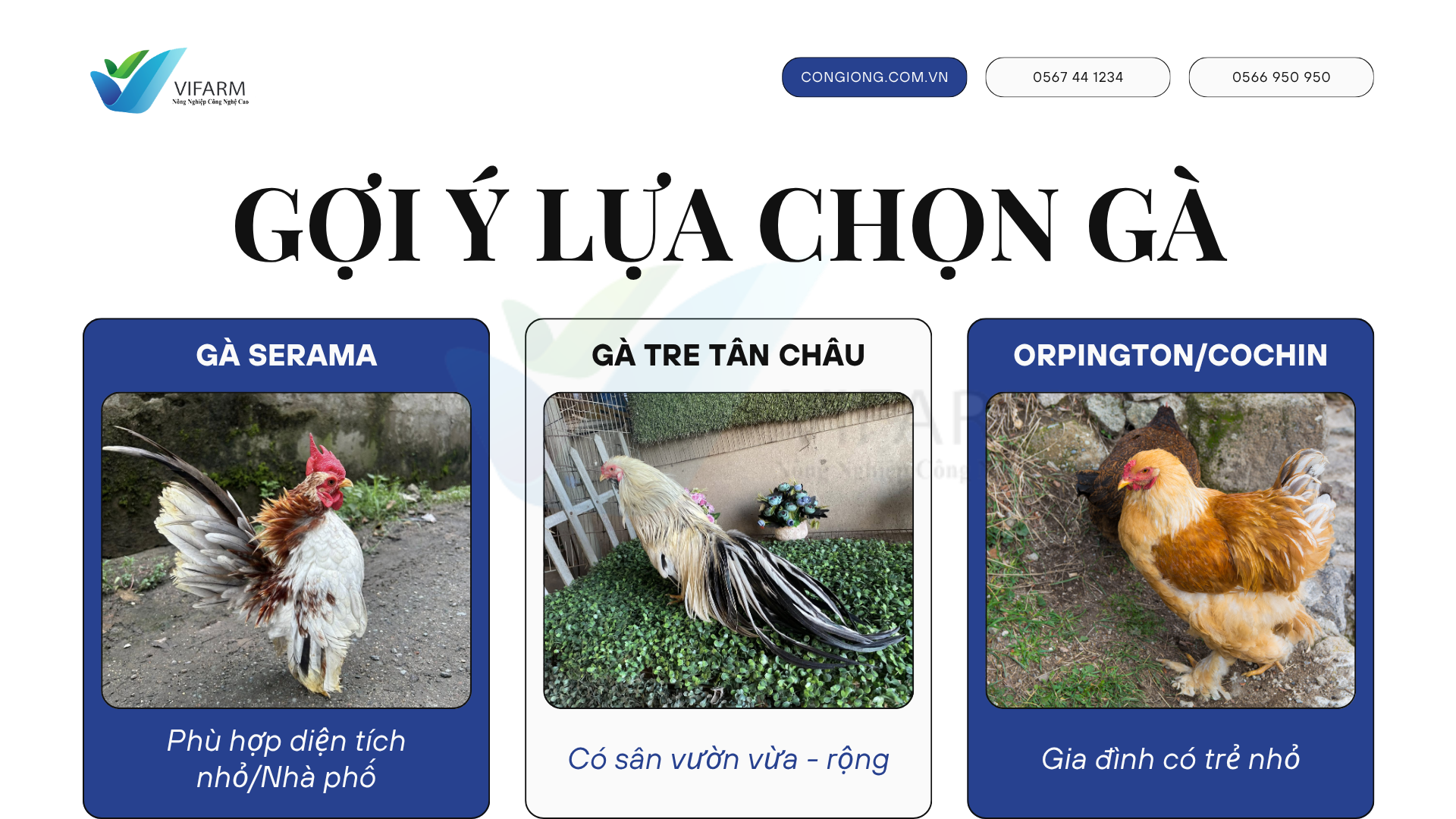 - Diện tích nhỏ (nhà phố): Serama + Ác lông xù (nhỏ, hiền, ít ồn).